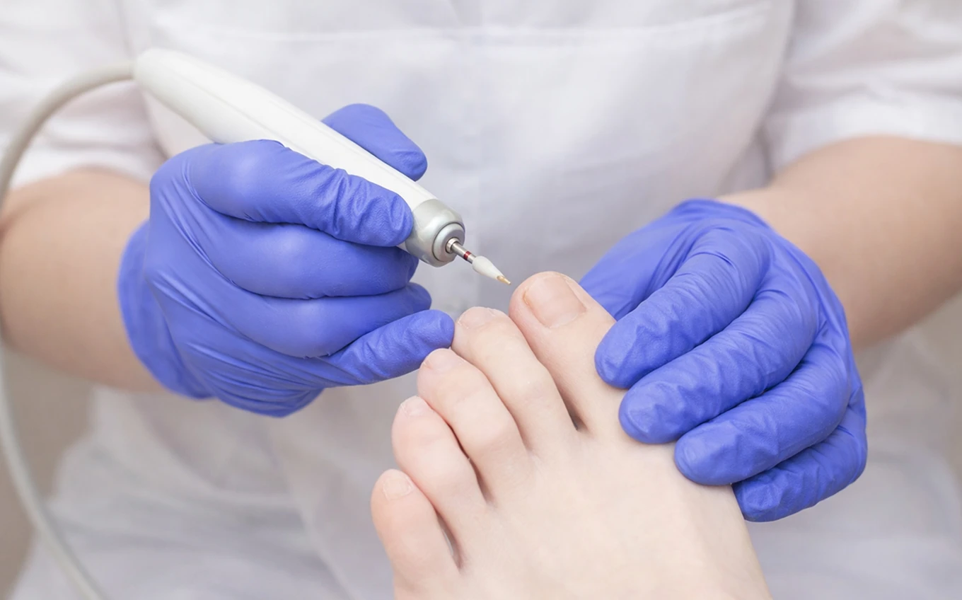 Подолог восстанавливает ногтевую пластину, контролирует рост, снимает нагрузку и помогает вернуть здоровый вид. - Обработка гиперкератоза, натоптышей и трещин